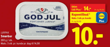 Lidl er den eneste kæde hvor du kan få Lurpak Smørbar til 10 kroner i øjeblikket. Tilbuddet løber fra den 16. november til og med i morgen den 22. november.