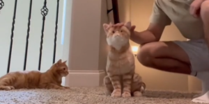 Ejeren konfronterer sin hund med pizzaen, og en flov hund kigger skiftevis på sin ejer og væk. Heldigvis giver ejeren hunden pizzaen tilbage.