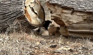 Hundens træner skyndte sig efter hunden, da han kunne se, at naturen havde kaldt, men det var desværre for sent.