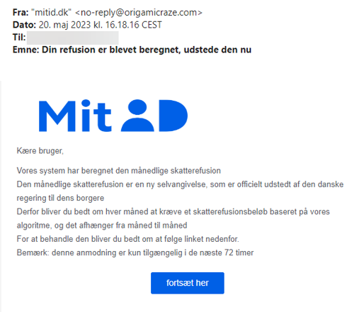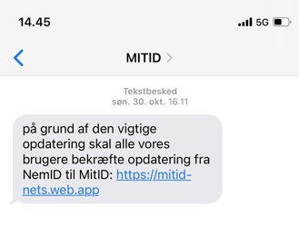 De kriminelle udgiver sig for at være officielle afsendere og sender falske mails og sms’er, som kan ligne de ægte til forveksling. I beskederne står der ofte, at du skal “opdatere MitID” eller “bekræfte dine oplysninger” via et link.