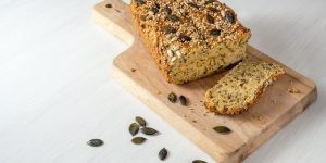 Brug en spiseske til at hælde dejen i den forberedte brødform og bag den i cirka 50 til 60 minutter på midterste rille i ovnen.