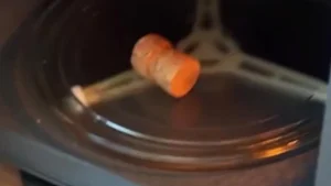 Flasken med vin sættes derefter ind i skoen, så den får en L-form. Derefter skal du bare finde en hård og holdbar overflade som en væg og begynde at banke skoen mod den og holde vinen fast på plads.
